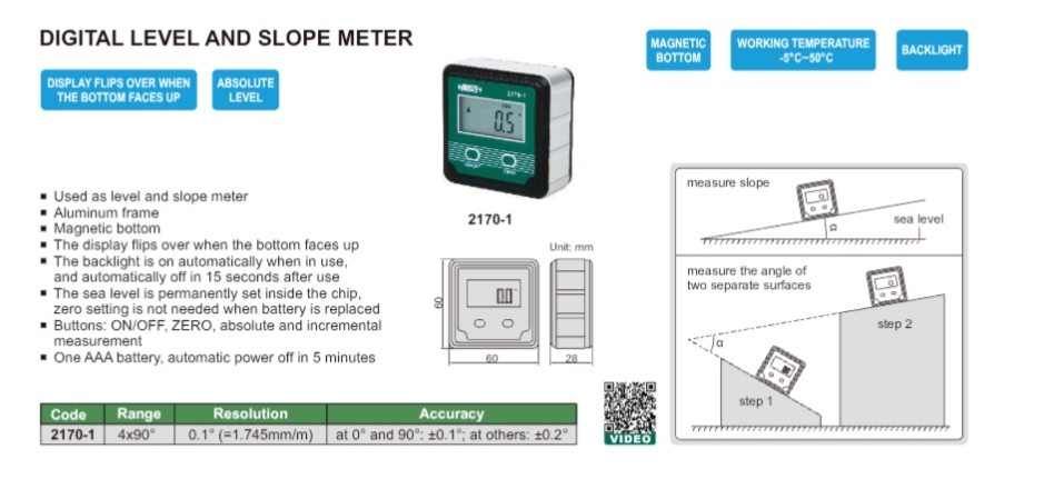 تراز شیب سنج و زاویه سنج دیجیتال اینسایز مدل 2170-1